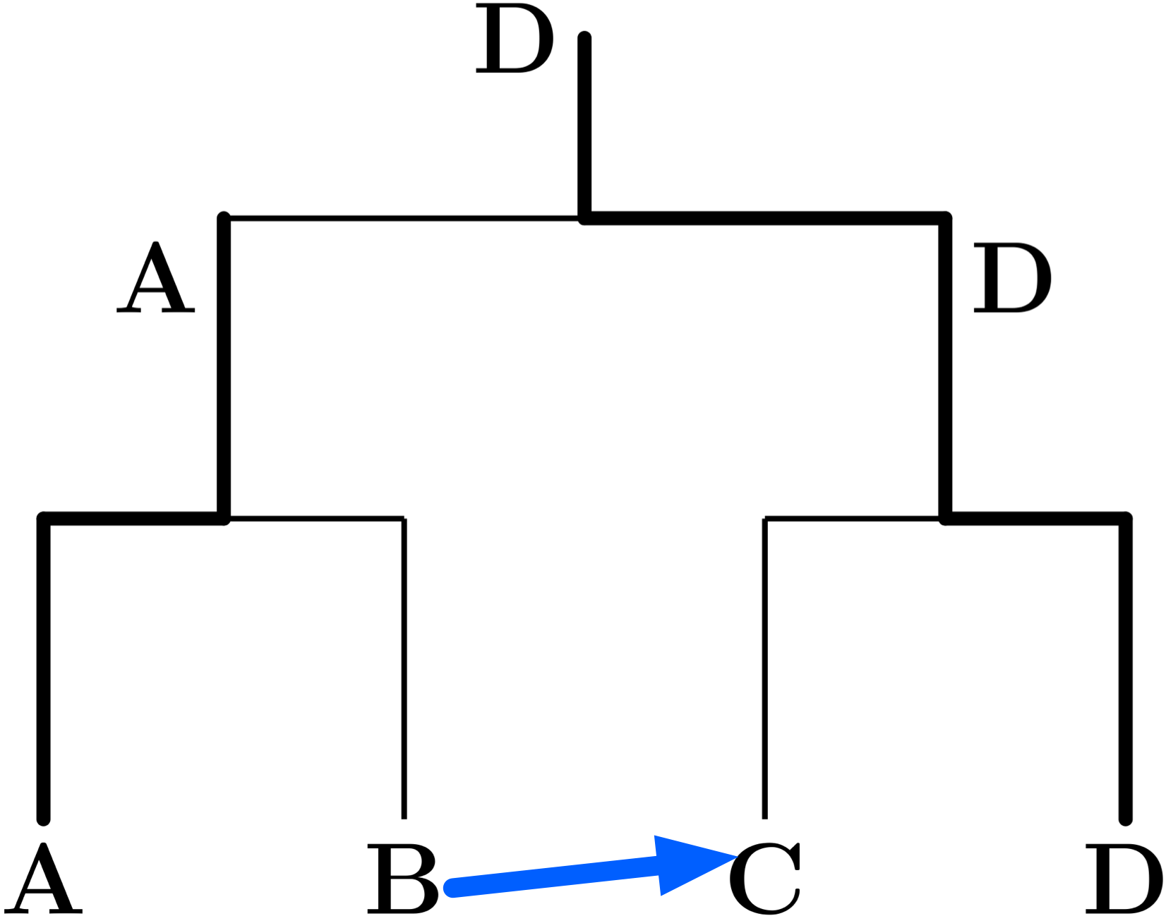 僕「A対BでAが勝ったことにしよう。 そうすると、Aはこんなふうにトーナメントの図で上に上がっていくわけだ」