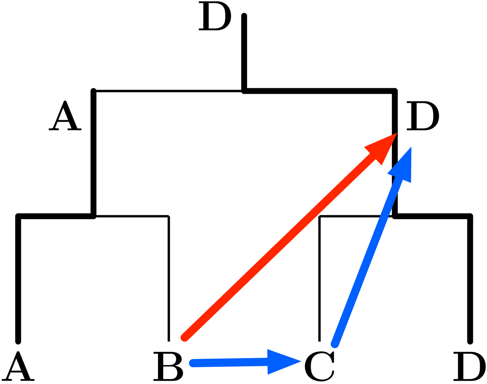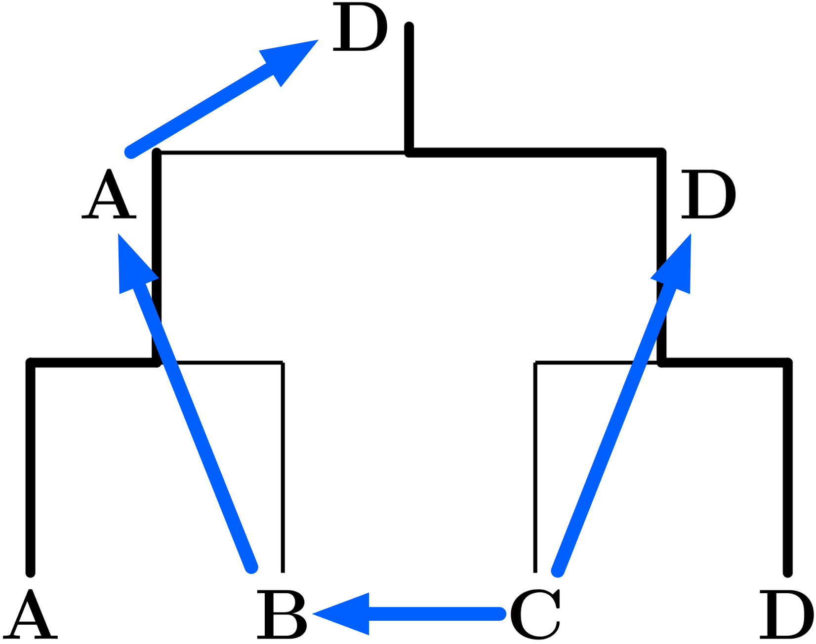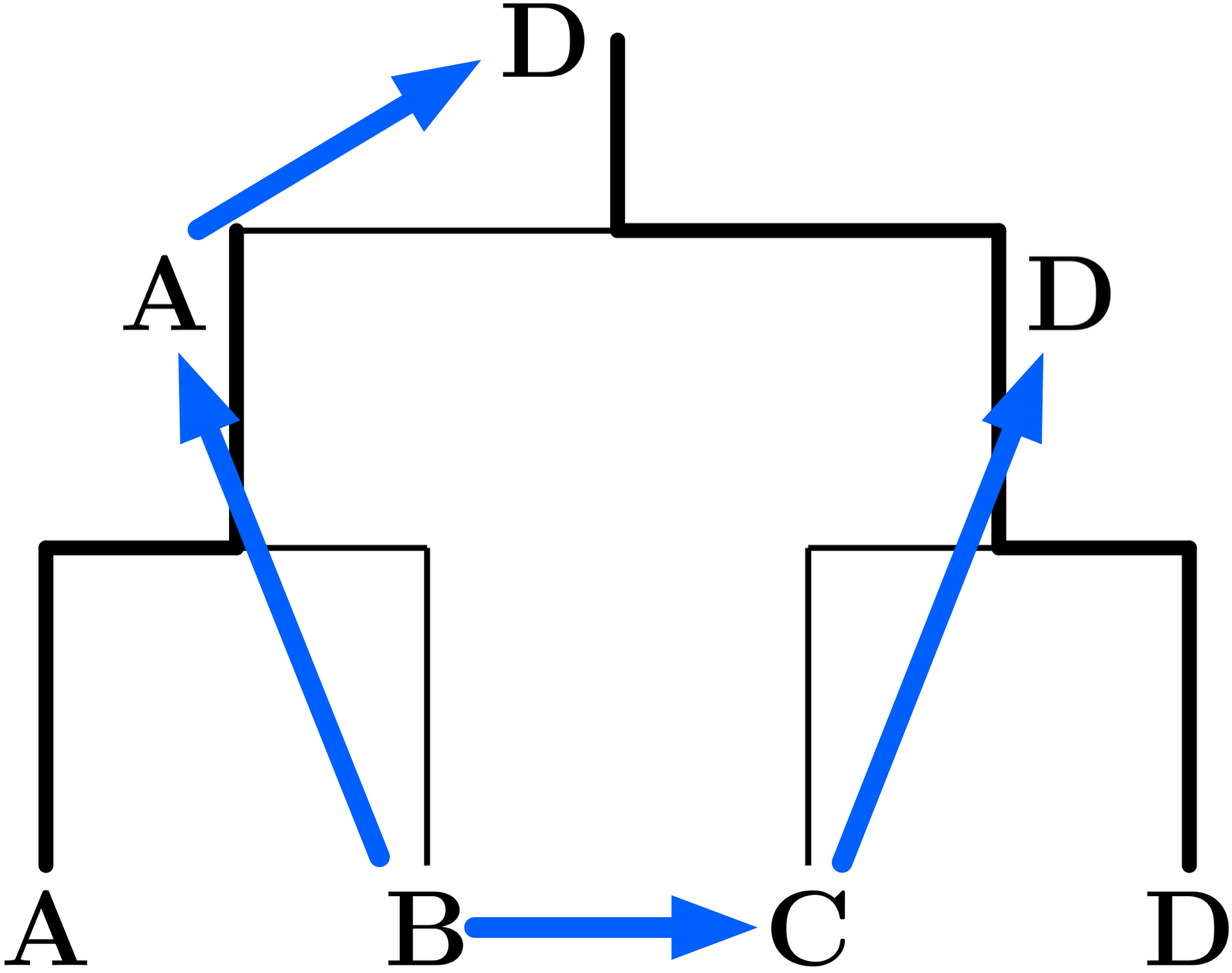 僕「この二つの図で、二つに分かれているDをまとめて、矢印を少し整理するとこうなる」
