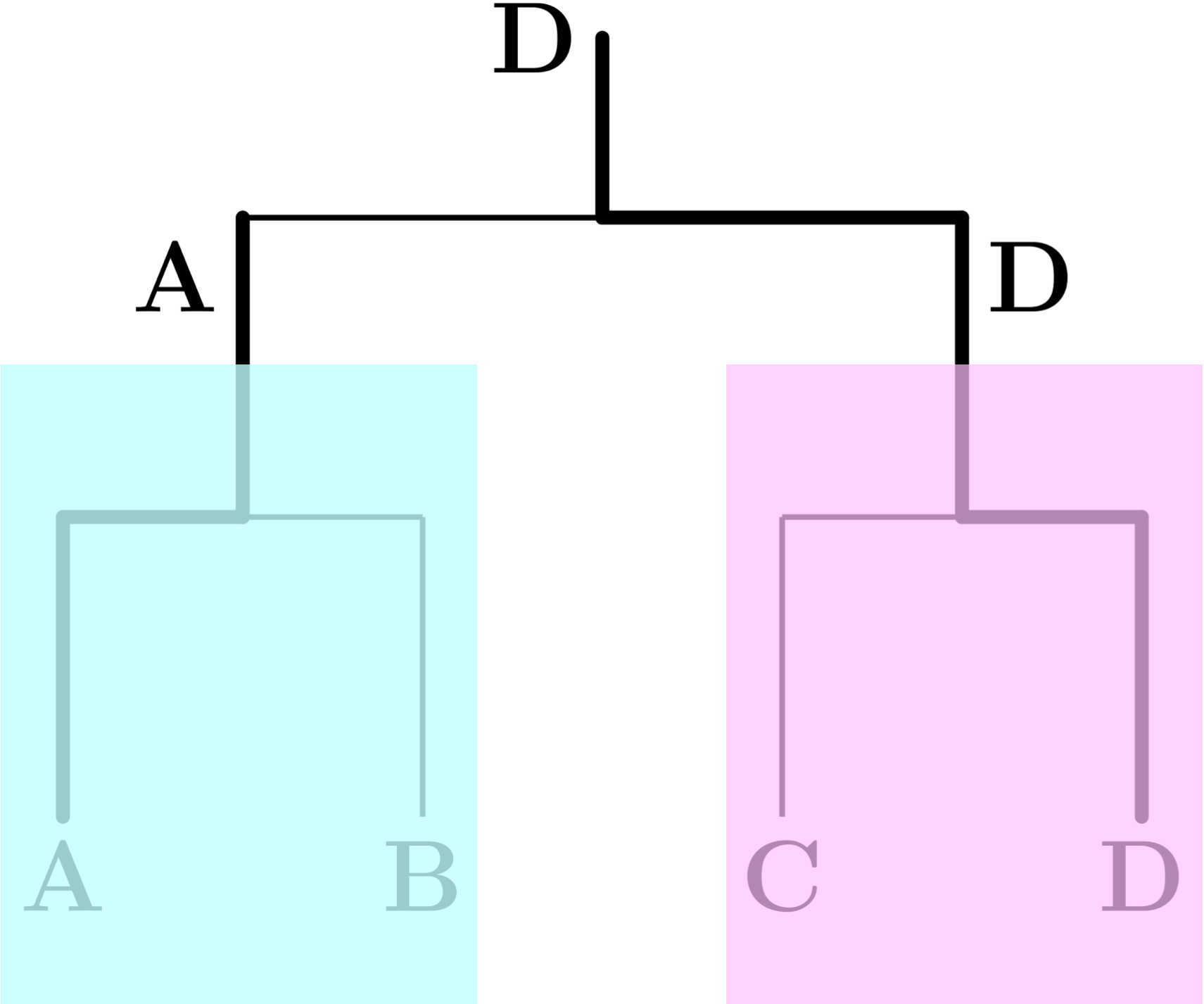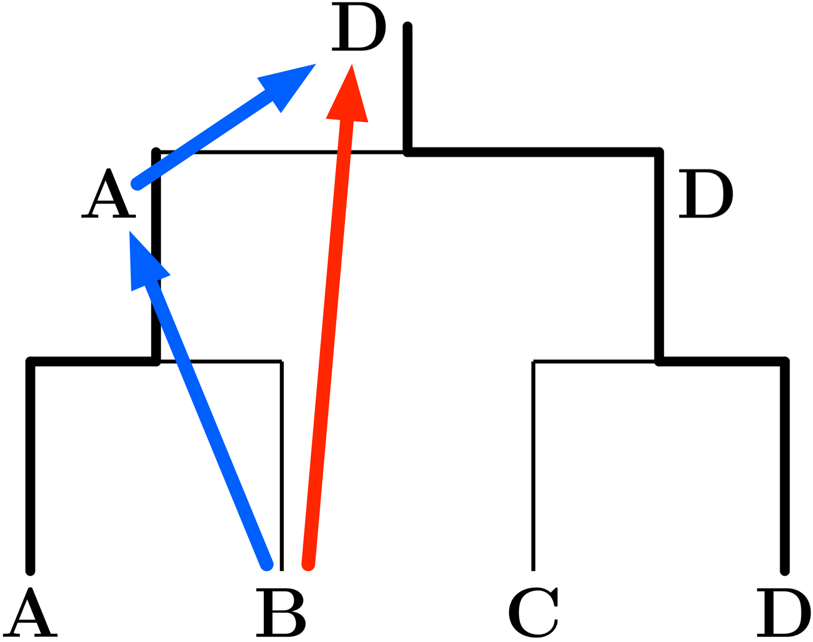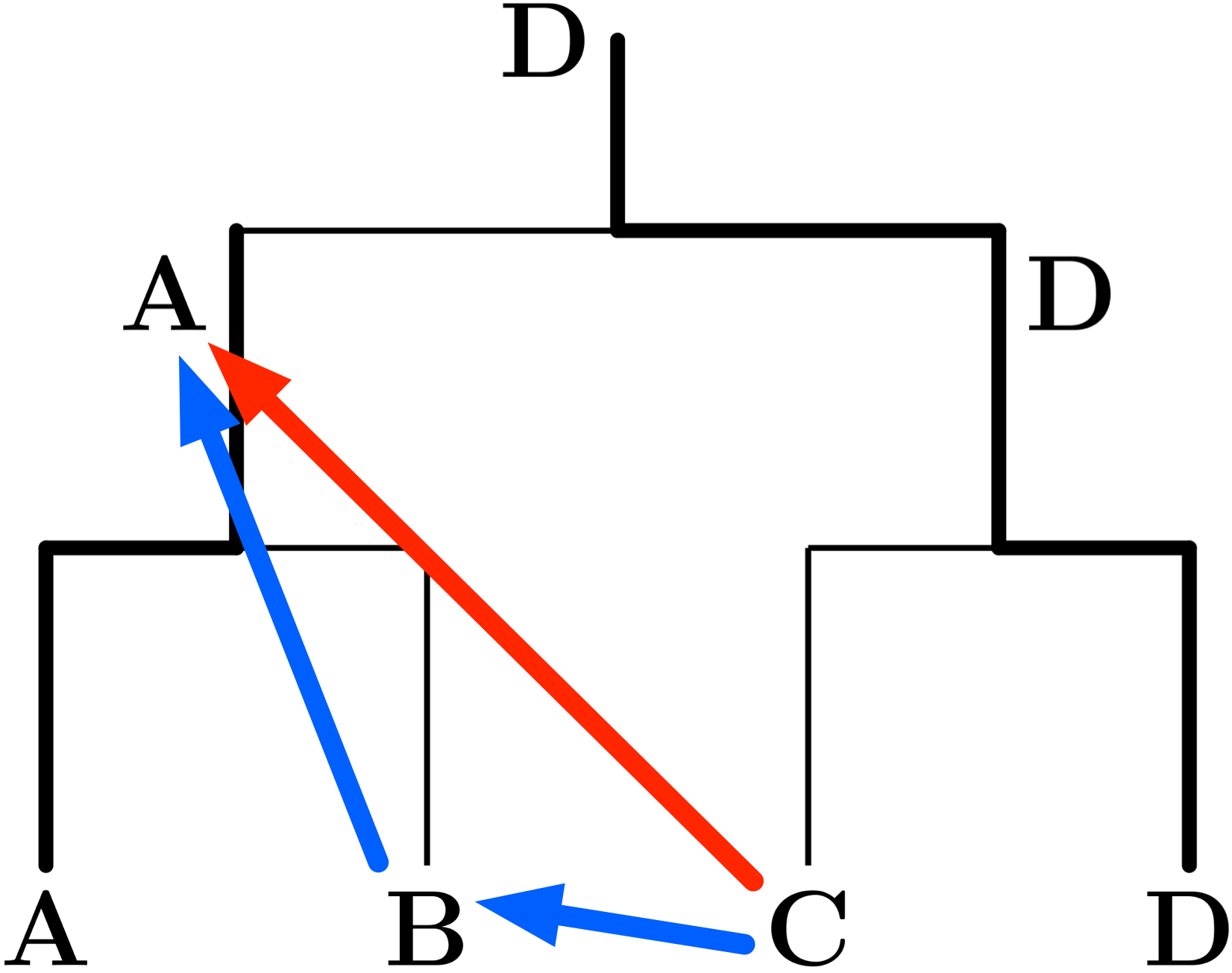 僕「この二つの図で、二つに分かれているDをまとめて、矢印を少し整理するとこうなる」