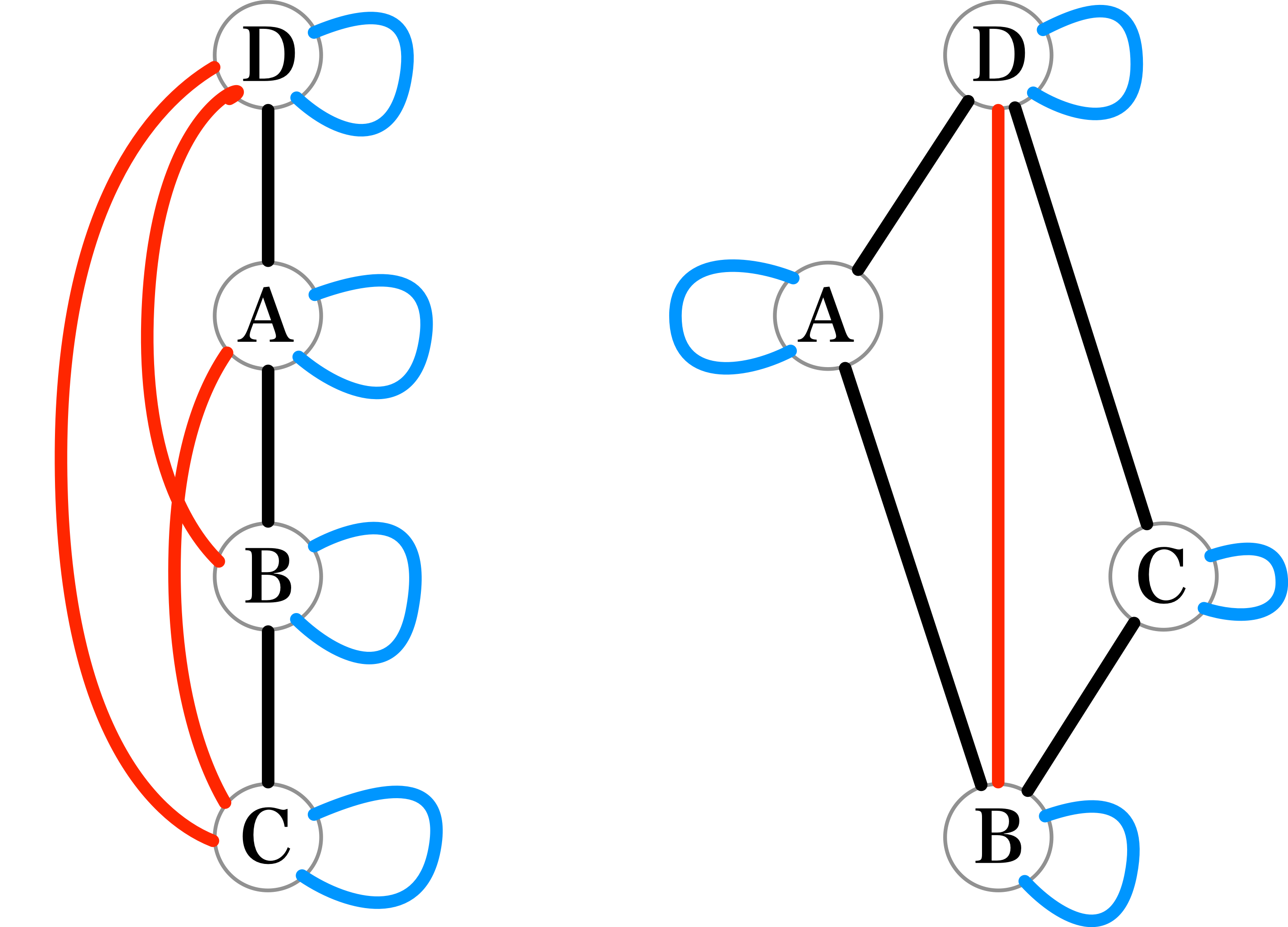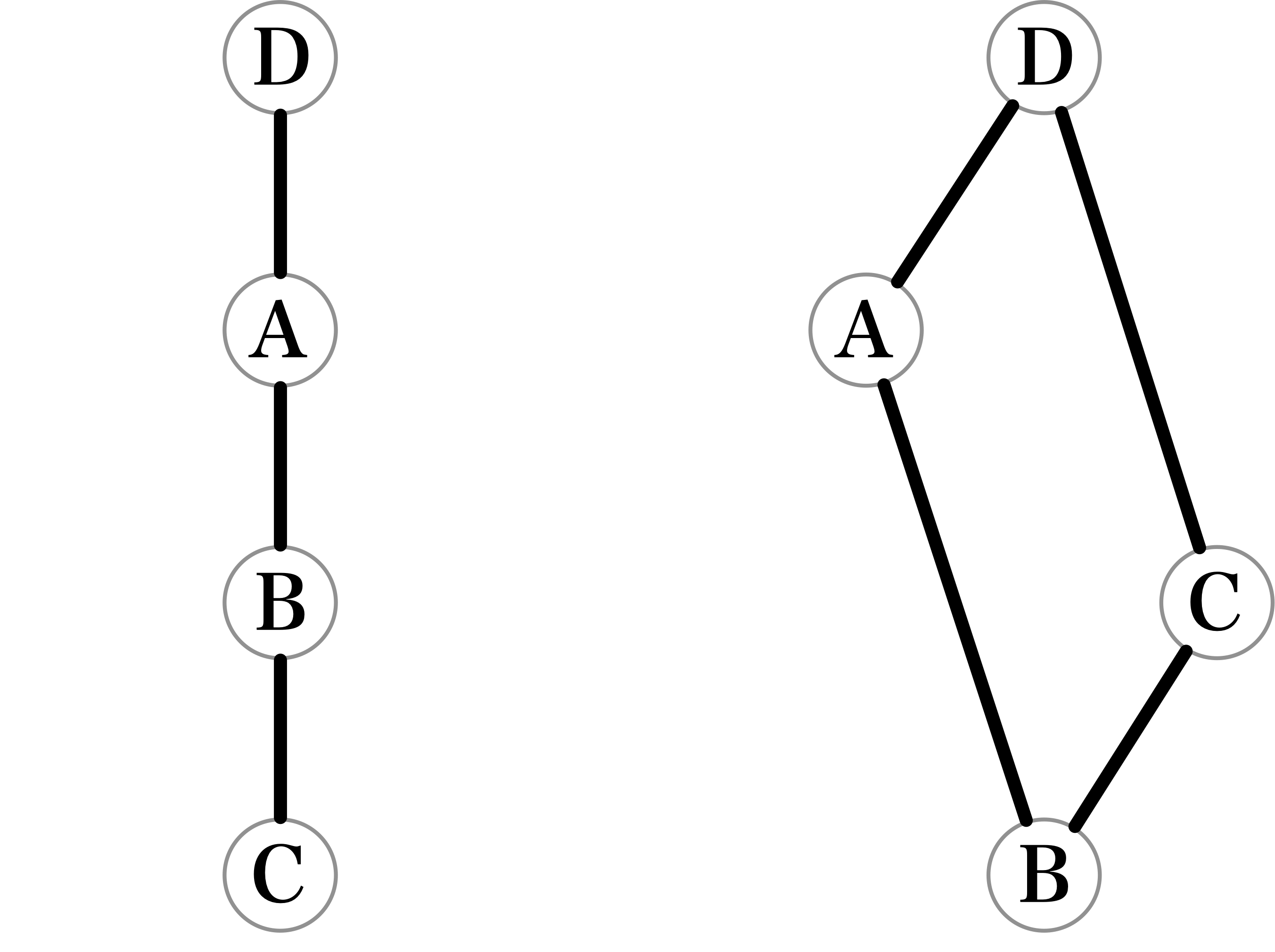 僕「左の図はC→B→A→Dと一本道になる。 でも右の図はBからAとCの二つに分岐して、AとCからDに合流する。 この二つはもうそっくりじゃない。明らかに違うよね!」