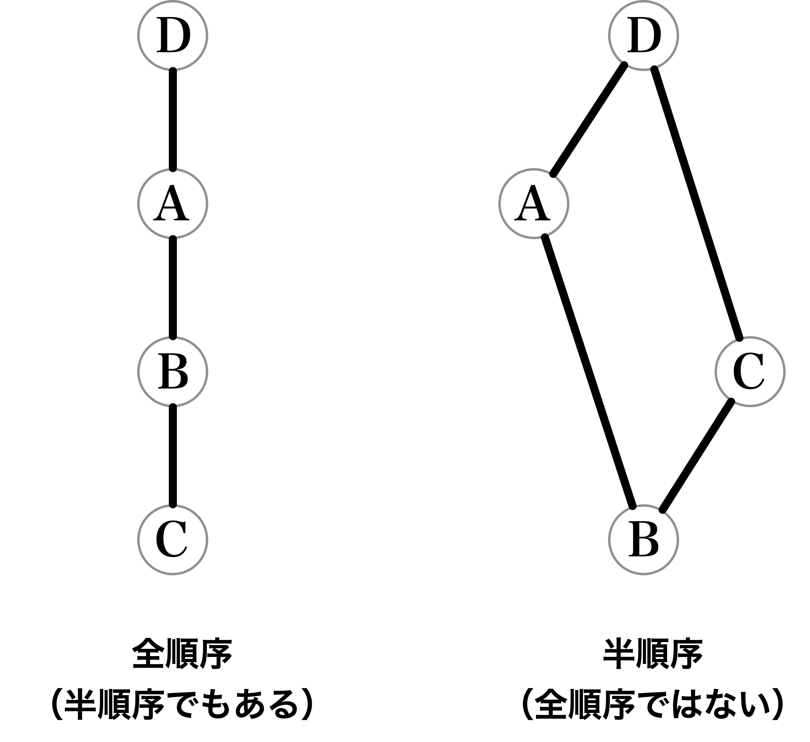 僕「右は一本道じゃない。こういうのは全順序ではないけれど、 順序ではある。半順序ともいう」