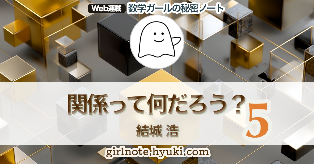 僕「不等号 $<$ で表されるような《数の大小》も関係の一種だし、 等号 $=$ で表される《数が等しい》というのも関係の一種だね」