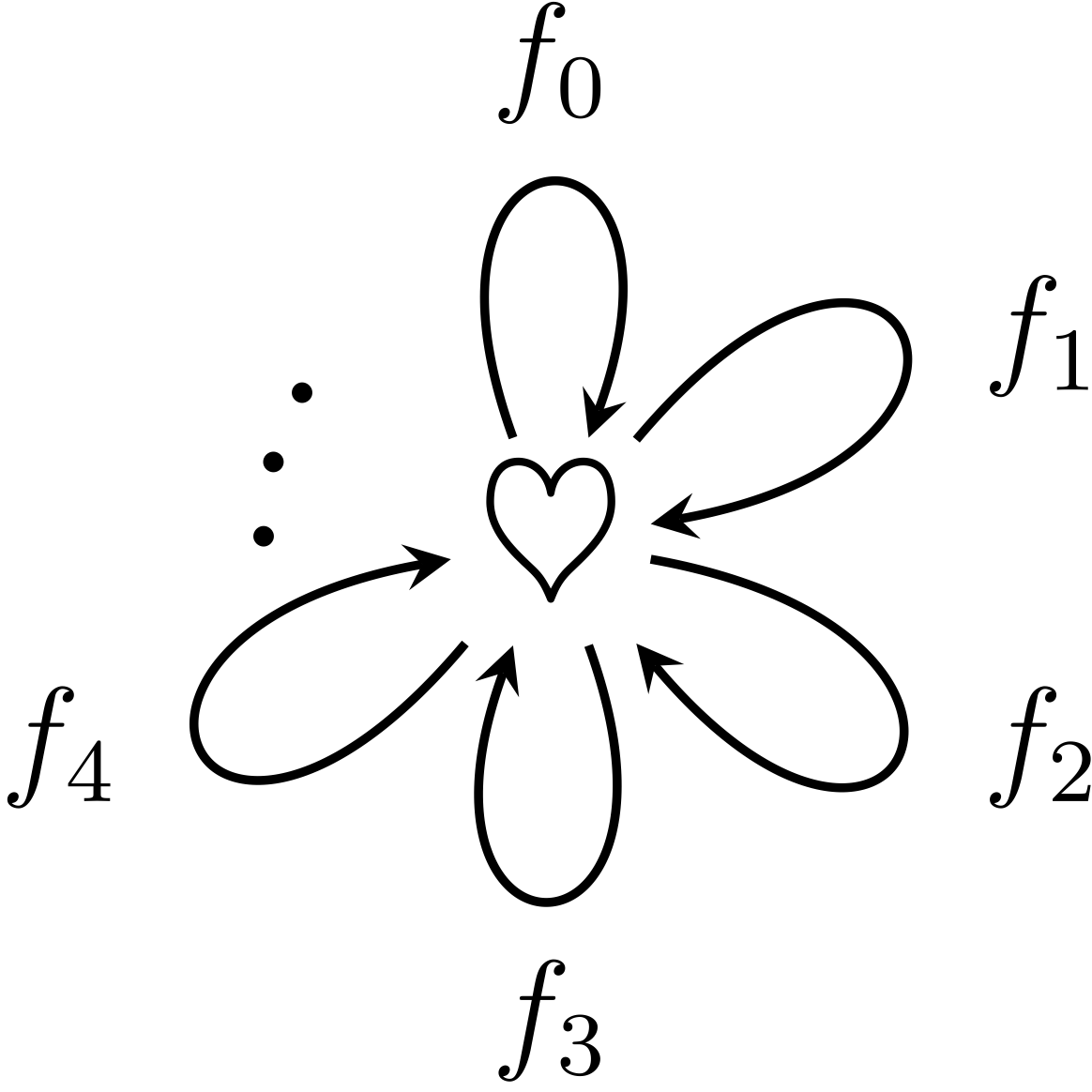 ミルカ「$0$ 以上の整数全体の集合をいま $N$ とする。 つまり、 $$ N = \SET{0, 1, 2, 3, \ldots} $$ ということ。 $N$ は集合の名前で、 $\CatN$ は圏の名前だ。 そして、圏 $\CatN$ の射は $n\in N$ に対応させて $f_n$ という名前にしよう。 すなわち $\CatN$ の射は、 $$ f_0, f_1, f_2, f_3, \ldots $$ というもの。そして射の合成 $\circ$ は、 $$ f_n\circ f_m = f_{m+n} $$ によって定義する。 これが結合律を満たすことは $N$ 上の $+$ が結合律を満たすことからいえる。 なお、合成の定義では、 $f_m$ が先であることに注意。 $$ \FromArrowViaArrowTo{\CN}{f_m}{\CN}{f_n}{\CN} $$ もっとも、 $m+n = n+m$ だから 圏 $\CatN$ で射の合成 $\circ$ は可換になるが。 さあ、これで圏 $\CatN$ が定義できた」