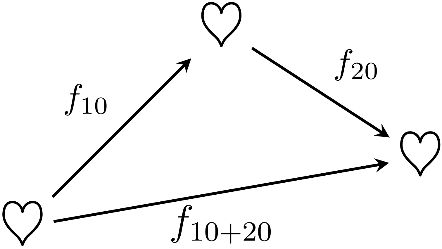ミルカ「ナイストライだが、足し算と引き算では重大な違いがある。 それは引き算では結合律が成り立たないことだ。 たとえば、 $$ \begin{xalignat*}{2} (10 - 5) - 3 &= 2 \\ 10 - (5 - 3) &= 8 \end{xalignat*} $$ なので、 $$ (10 - 5) - 3 \NEQ 10 - (5 - 3) $$ になる。だから引き算で射の合成を定義するなら、 その合成は結合律を満たさないことになり圏にはならない」