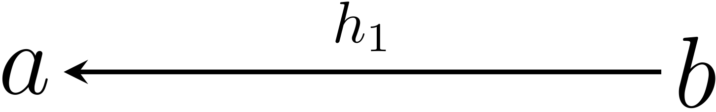 すると、 $$ \begin{xalignat*}{2} h_1 &= h_1\circ\MARKA{\ID{b}} && \textrm{$\ID{b}$は$b$の恒等射だから} \\ &= h_1\circ\MARKA{(h\circ h_2)} && \textrm{$h_2$は$h$の逆射だから} \\ &= \MARKB{(h_1\circ h)}\circ h_2 && \textrm{結合律から} \\ &= \MARKB{\ID{a}}\circ h_2 && \textrm{$h_1$は$h$の逆射だから} \\ &= h_2 && \textrm{$\ID{a}$は$a$の恒等射だから} \\ \end{xalignat*} $$ だから、 $$ h_1 = h_2 $$ となり、 $h$ の逆射は $h$ に対して一意性を持つ。